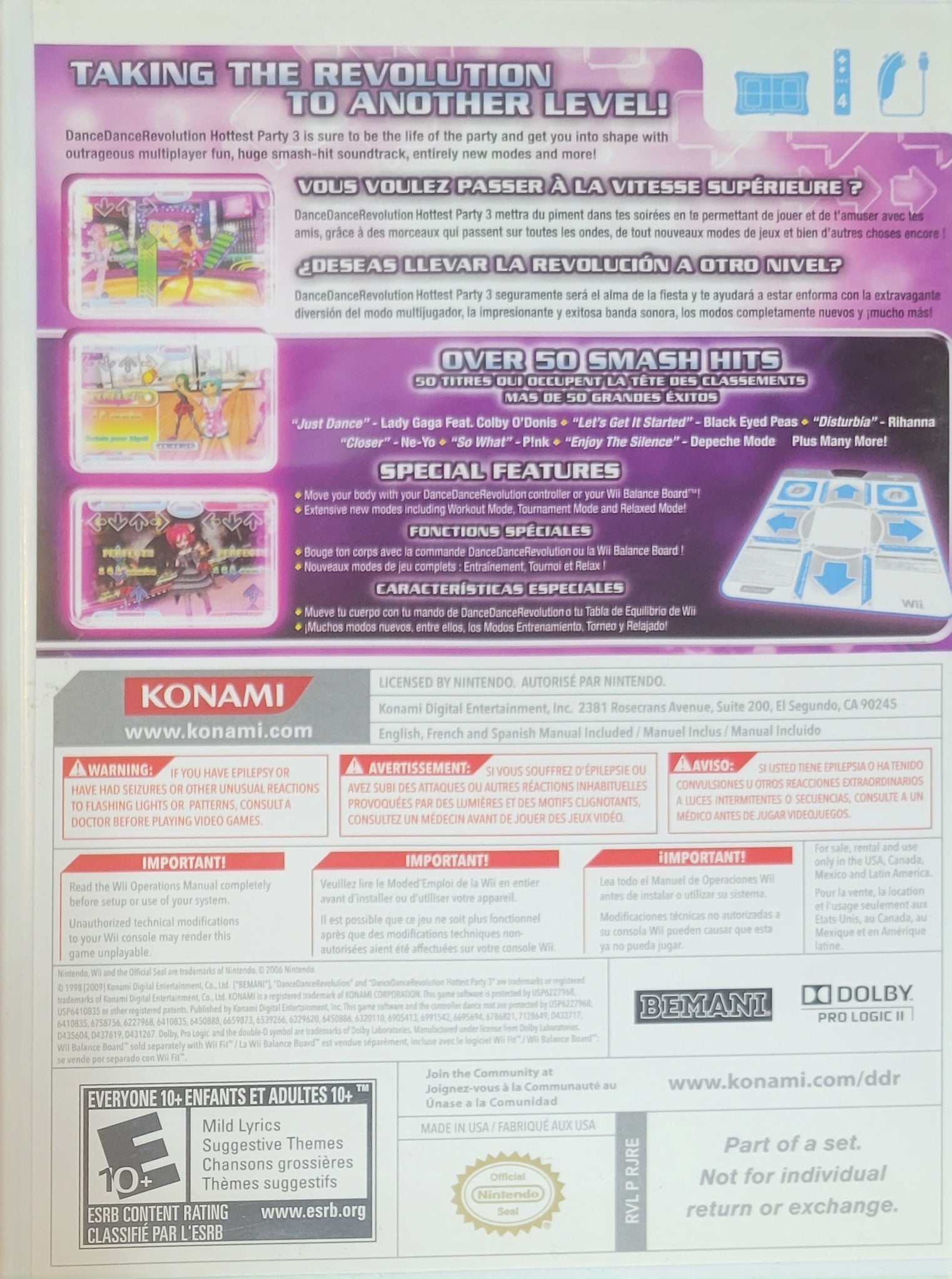 Dance Dance Revolution Hottest Party 3 – Nintendo Wii – CIB – Clean Disc