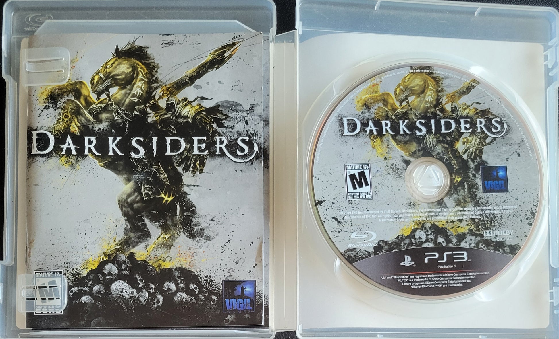 Embark on an apocalyptic adventure with Darksiders for PlayStation 3. This Complete in Box (CIB) edition includes the original case, artwork, and disc in superb pre-owned condition. Manual included when available. Play as War, one of the Four Horsemen, battling angels and demons in a story-driven hack-and-slash adventure.