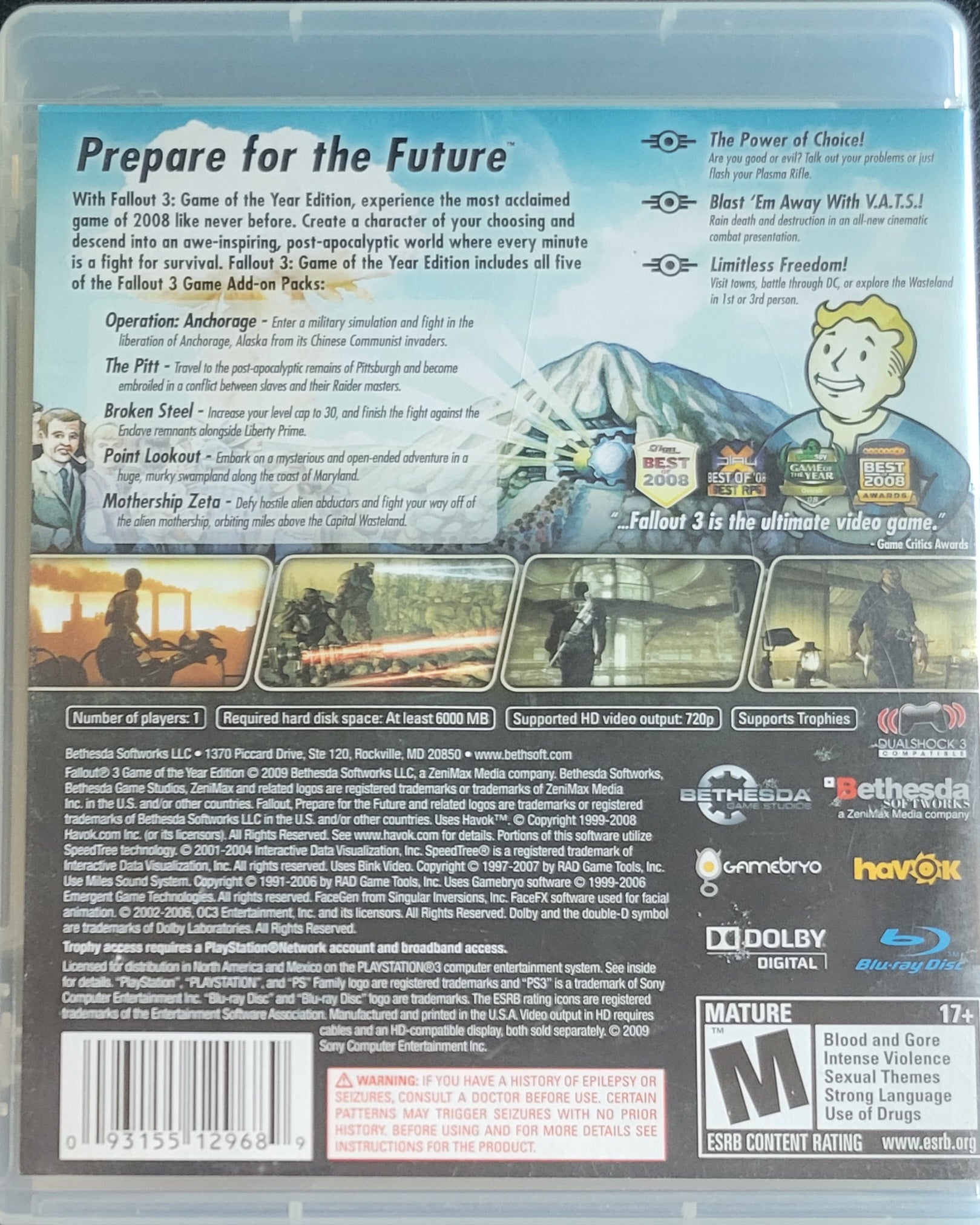 Fallout 3 Game Of The Year Edition (CIB) – Sony PlayStation 3 PS3 – Tested & Working