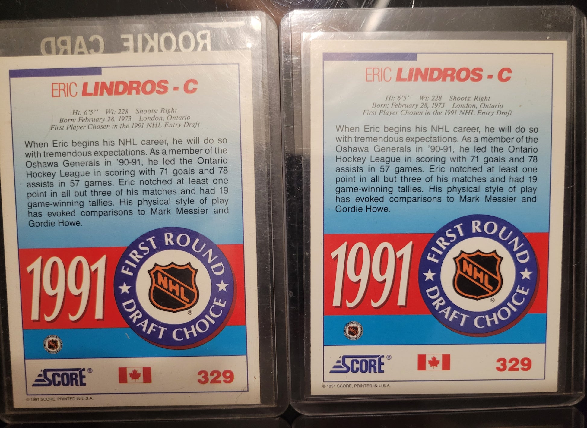 Lot Of 4 SCORE 91' ERIC LINDROS ROOKIE Cards MINT Soft + Top Loader Since New