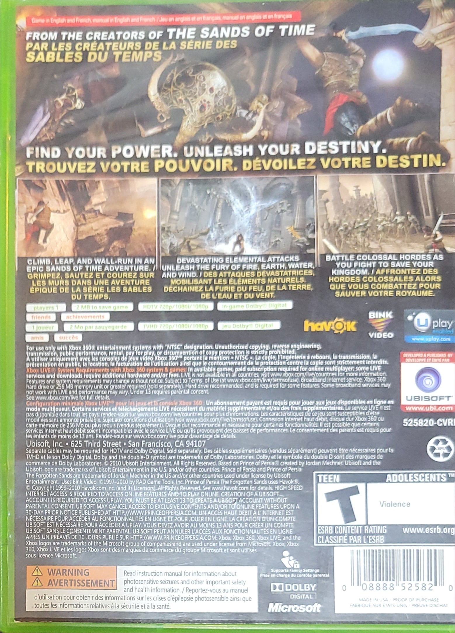 This pre-owned copy of Prince of Persia: The Forgotten Sands for Xbox 360 is RE-SEALED, ensuring it arrives in excellent condition with all original packaging intact. The disc has been professionally cleaned, tested, and is ready for action-packed adventure or to be added to your collection.