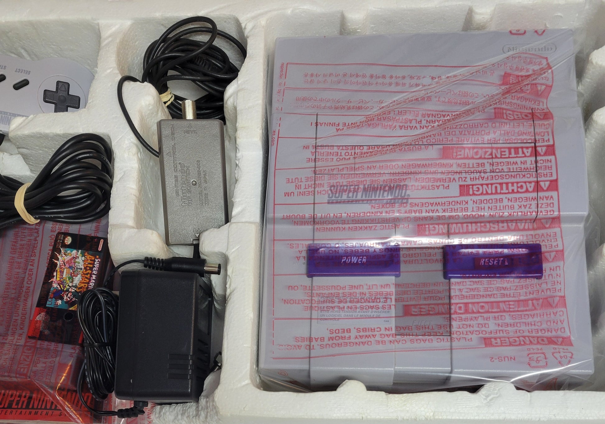 Super Nintendo Entertainment System ALL STARS EDITION Console – Complete in Box FACTORY PLASTIC | Super Mario All-Stars + 1 Controller + Hookups | Immaculate Condition