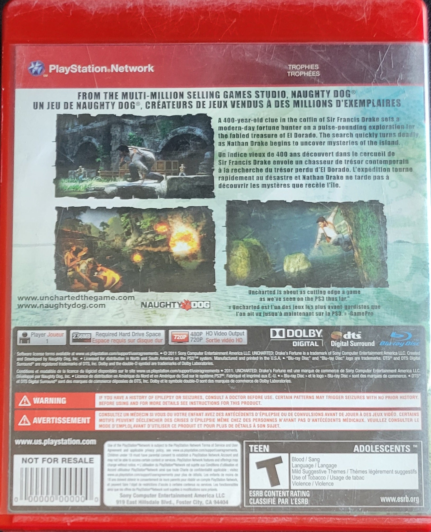 Embark on the first adventure of Nathan Drake in Uncharted: Drake's Fortune – NFR Edition for PlayStation 3. This Complete in Box (CIB) edition includes the original case, artwork, and disc in excellent pre-owned condition. Manual included when available. Explore hidden tombs, solve puzzles, and engage in thrilling third-person combat in this action-adventure classic.